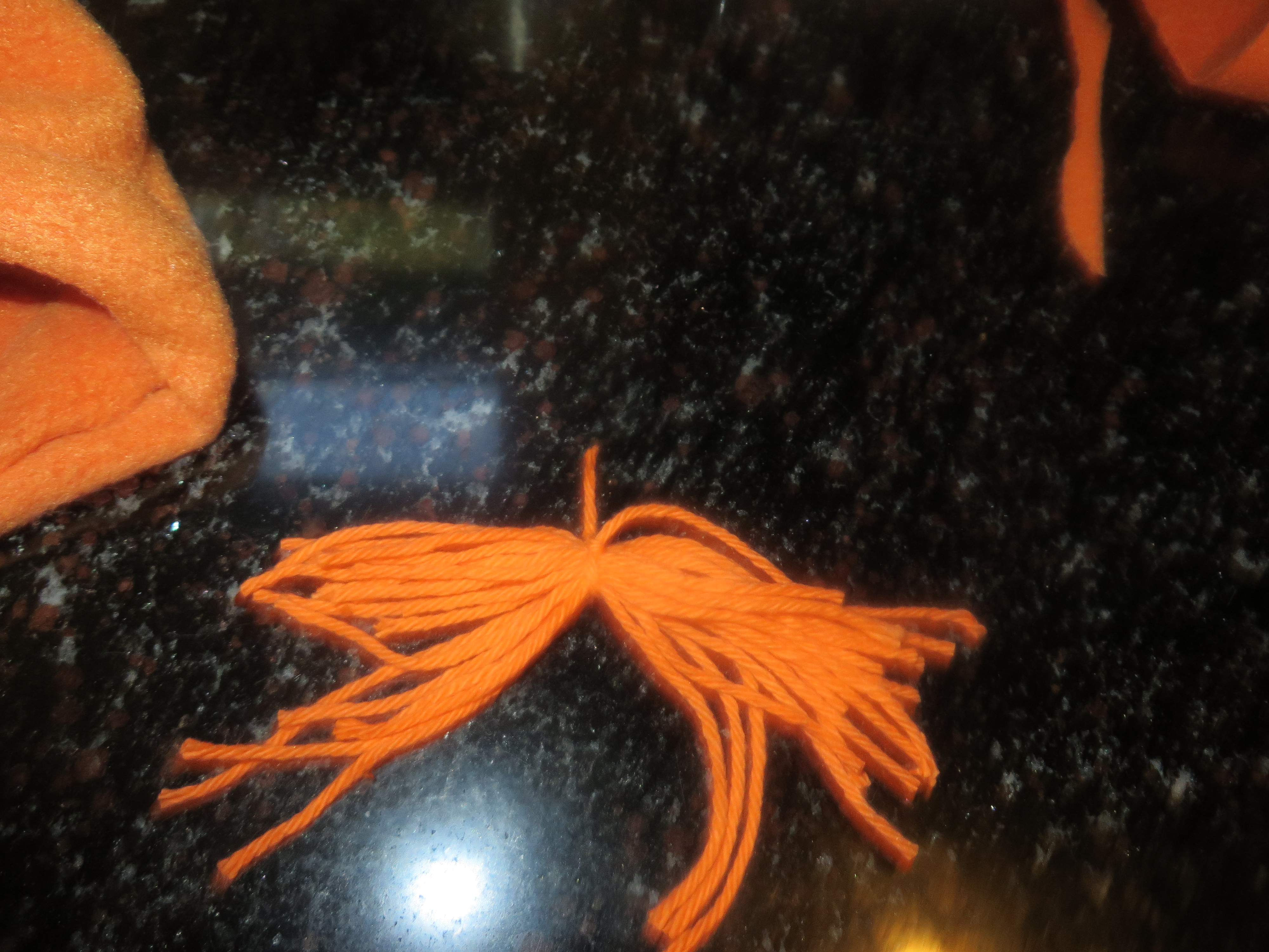 And now you can get cutting your braid and bang lengths from your orange yarn.