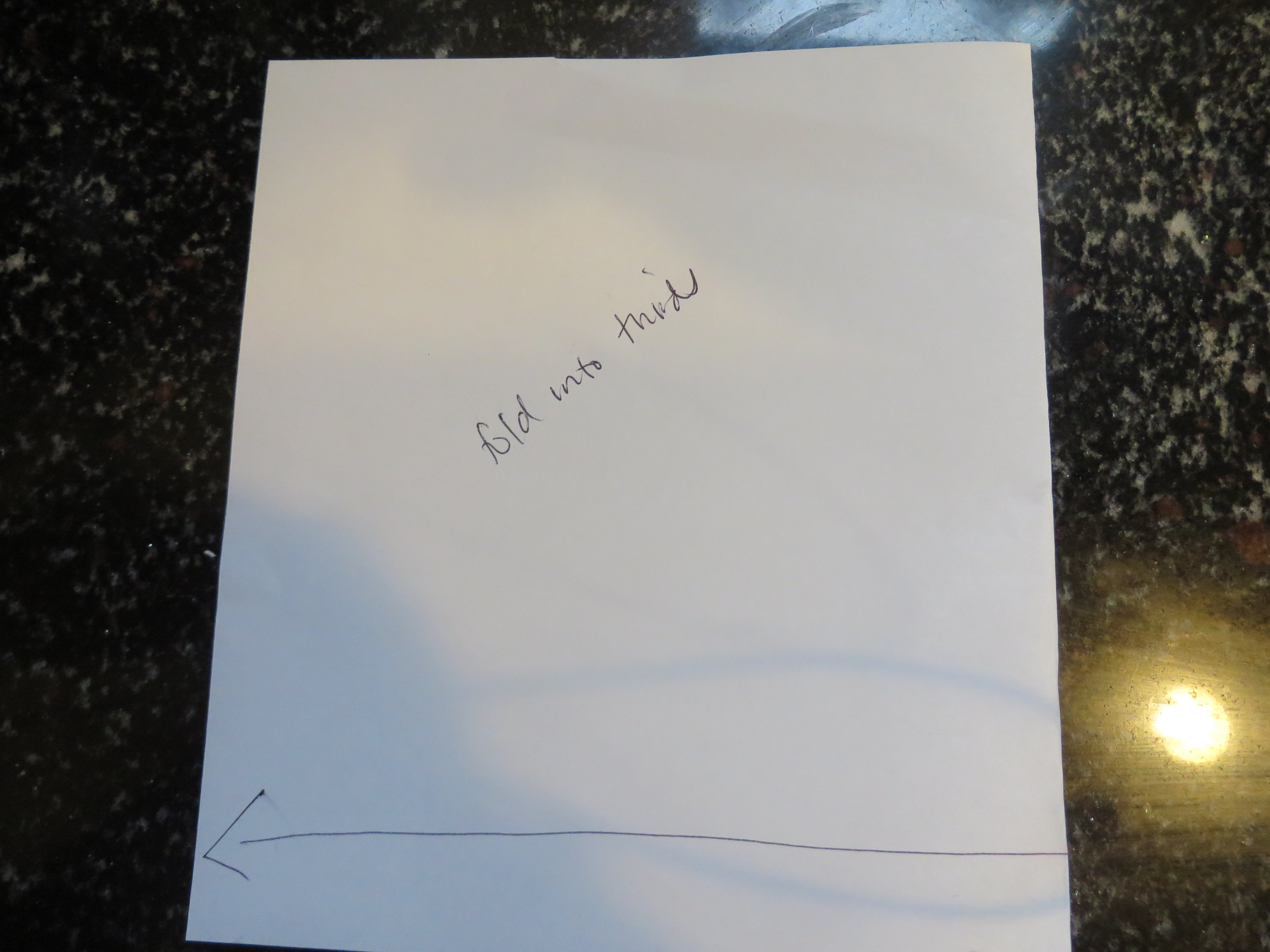 To do this, we need to first fold the paper into equal thirds, like this: