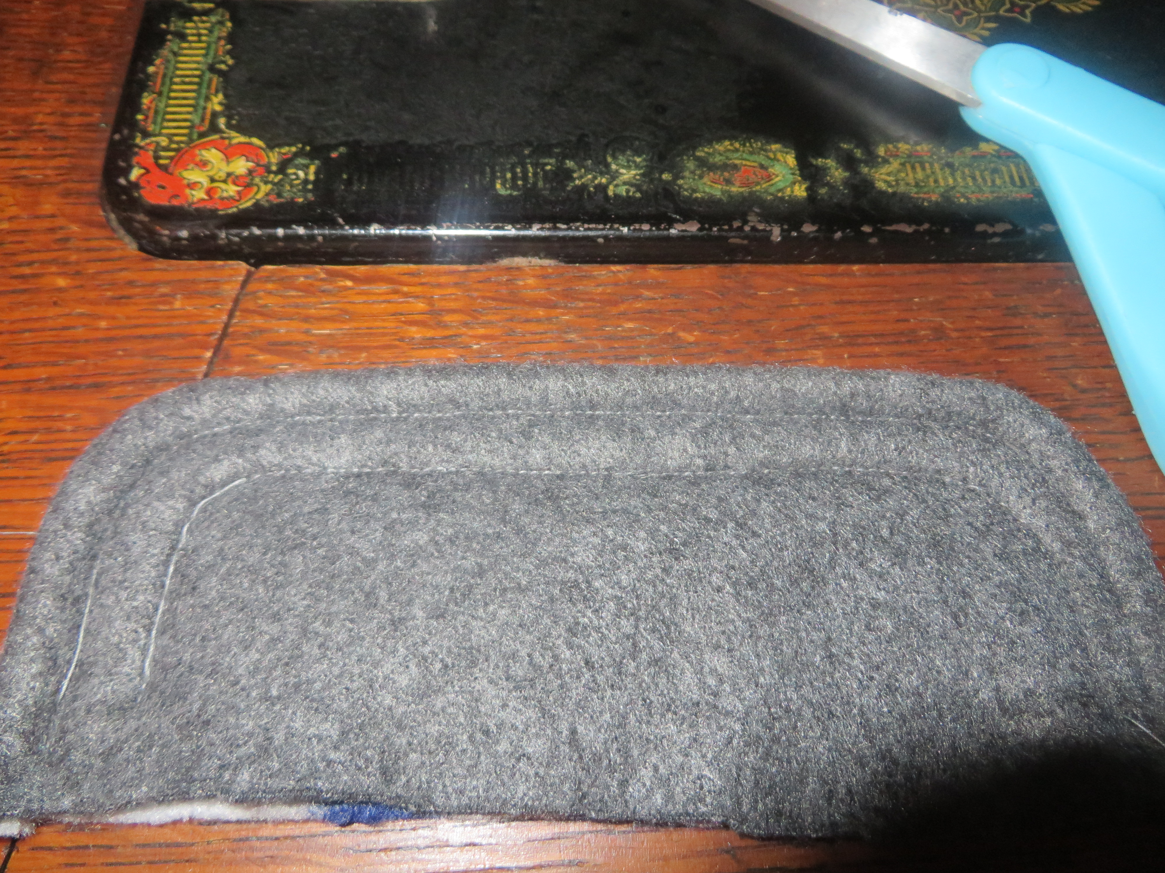 Sew around the entire bottom edge of the hat, securing the visor in place with an extra line of stitches across it.
