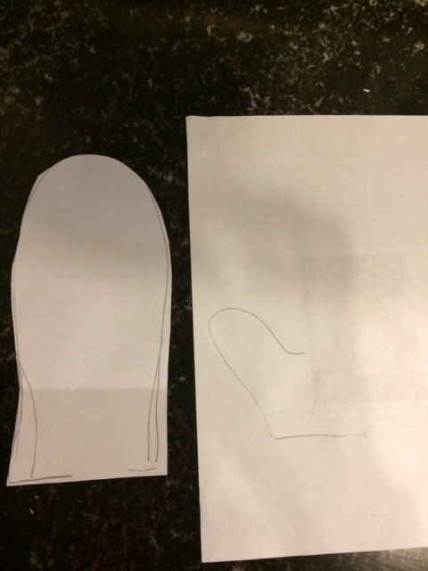So now you will need to trace around the top of your main mitten piece as well as around your thumb. And you will eventually cut that out, like this: