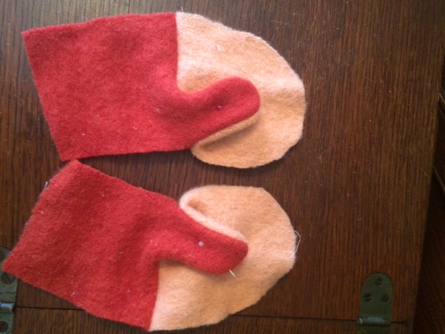 I apologize in advance, but I forgot to take a photo of the wool portion of the mitten when I was doing this. This is the same exact step, it’s just a photo of the fleece inner. And you have to do this to both sets of mittens anyway, so it’s no big deal, really.