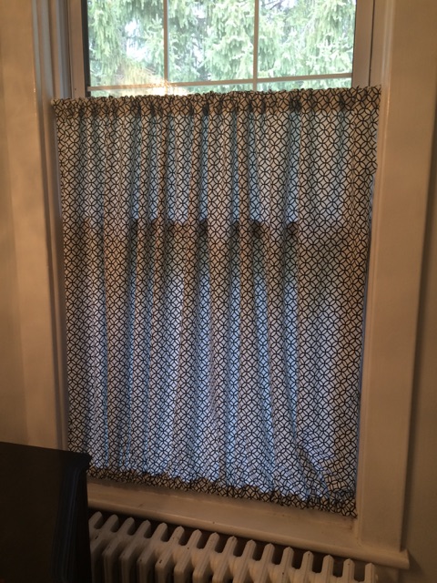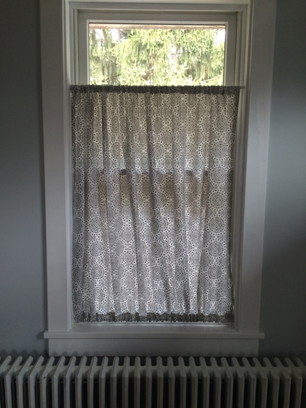 This really is easy and no fuss. I don’t mess or worry much about the height of the curtain panel, because that is determined by the measurements that the manufacturer uses. For instance, I think most of the Joann home decor fabric is around 45 inches in height (or something close to that). I lose roughly five inches (if I remember correctly) when I make my top and bottom loops, and that’s fine with me. The most important thing is to get the right amount of crinkle so that it doesn’t look like you just have a bed sheet hanging over your window.