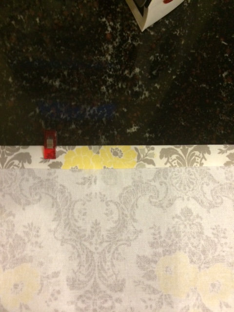 Step 4. Once you have ironed over your first fold on the side of your panel, remove clips (if you used them) and fold it over another 1/2 to 1 inch (folding width is personal preference) and repeat Step 3. Clip this in place.