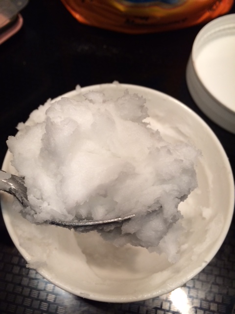 As you mix, the coconut oil and baking soda start to combine with each other. Your mixture will become smoother and smoother the longer you mix. Just mix until you have a consistency that you like.