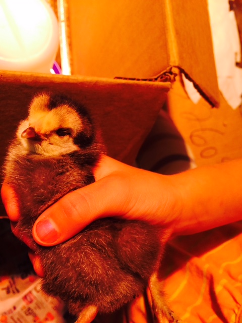 Since chickens are flock-oriented, we decided that five would be a nice number. We ended up ordering two Light Brahmas, one Black Jersey Giant, and two Easter Eggers. (The Brahmas and Giants, based on my research, are meant to be super-friendly – which has proven to be true – and the Easter Eggers will lay blue or green eggs, which is a nice addition to the home-grown egg basket.)