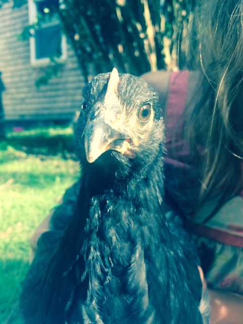 When I weed the garden, they keep me company. When the kids eat their snacks outside, the hens with the bad manners (Anna, I wish you’d stop it already!) jump up and try to take a peck out of their crackers or sandwiches. When Matt rides bikes with the kids while I make dinner, I watch out the window as they run across the driveway to scurry out of the way. When I find the nuisance Japanese Beetles on my plants, I pick up Anna or Batman and use them like vacuums for non-chemical pest control. When I lock them in the coop at night, I always say “Goodnight, Girls!” And you know what? They always chirp back!